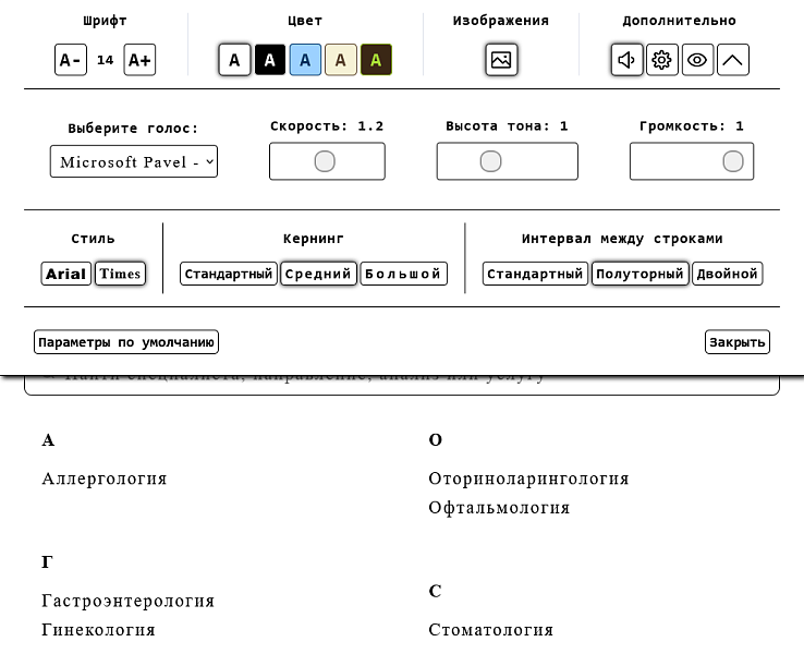 Прослушать сайт: Встроенный синтезатор речи озвучивает любой текст с возможностью настройки громкости и скорости.