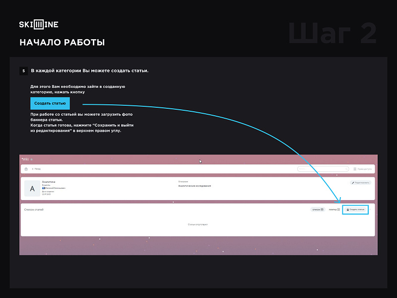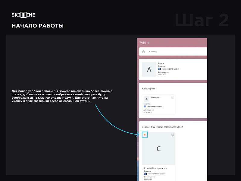 Данный модуль позволяет создавать и поддерживать внутреннюю корпоративную базу знаний в рамках единого пространства Битрикс24. Skillline-wiki позволяет структурировать и хранить информацию, создавая статьи, инструкции, справочники и регламенты, доступные всей команде или отдельным подразделениям.