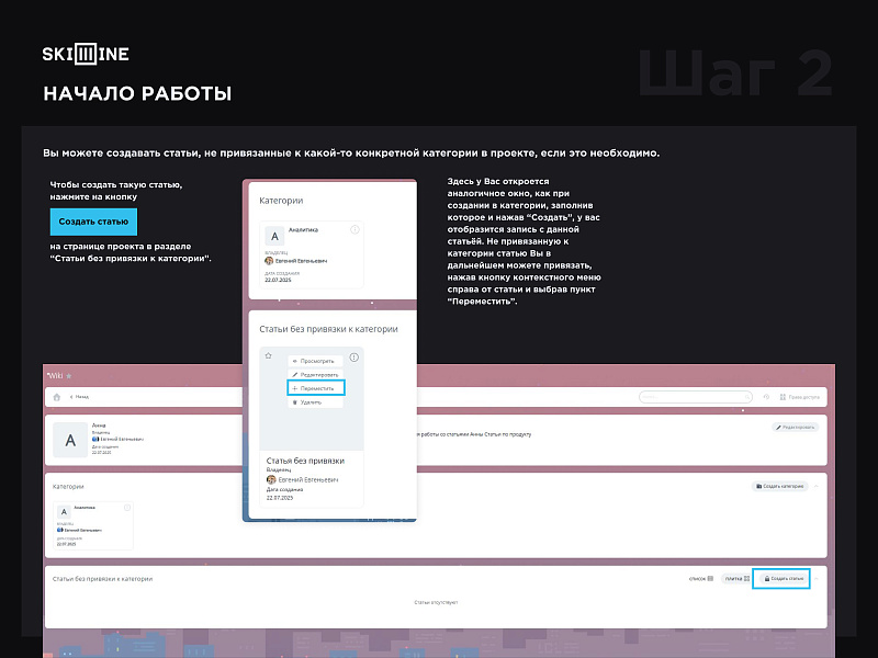 6. Также Вы можете создавать статьи, не привязанные к какой-то конкретной категории в проекте, если это необходимо. Чтобы создать такую статью, нажмите на кнопку “Создать статью” на странице проекта в разделе “Статьи без привязки к категории”.