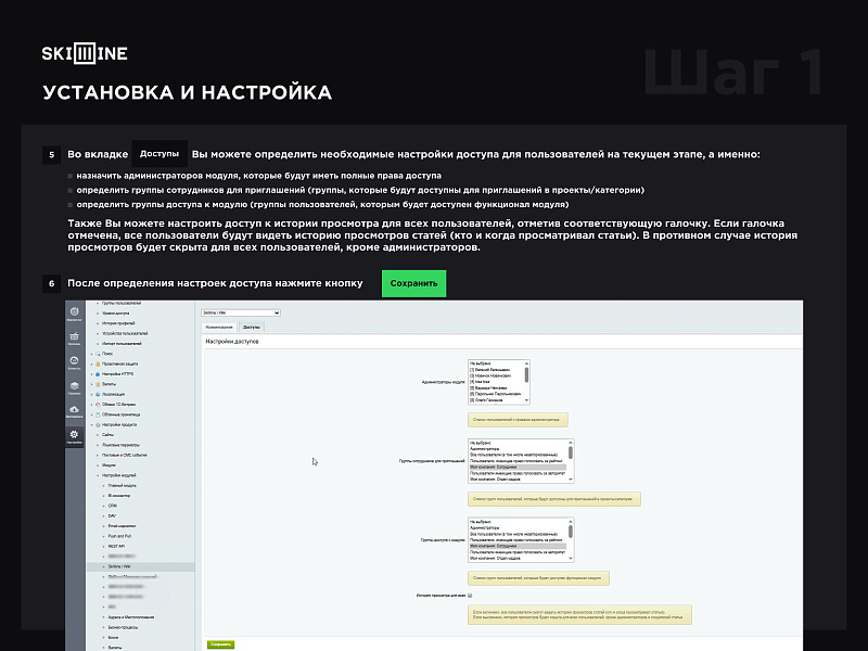 назначить администраторов модуля, которые будут иметь полные права доступа;