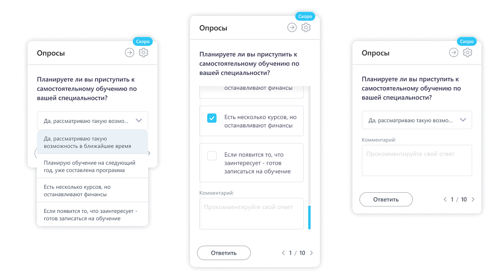 Необязательные, но важные опросы, отображаются в виде виджета на правой панели Главной страницы.