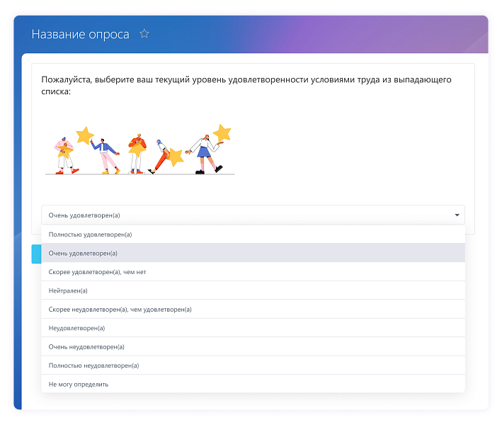 Форма опроса предполагает выбор одного ответа из выпадающего списка.