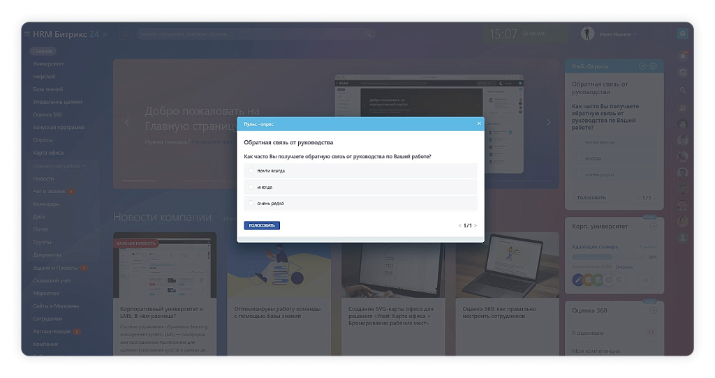 Модуль “Улей: Опросы” расширяет стандартную функциональность Битрикс24: