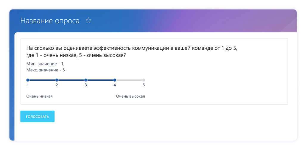 Оценка уровня удовлетворенности. Например, на шкале от 1 до 10 сотрудники могут указать 7.5