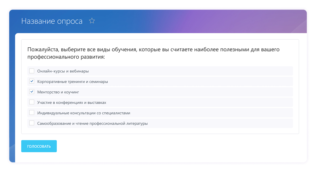 Форма опроса, в которой участники могут выбрать несколько вариантов ответа из предложенного списка.