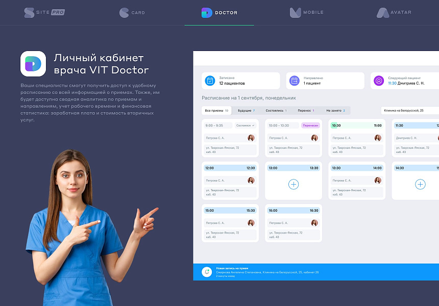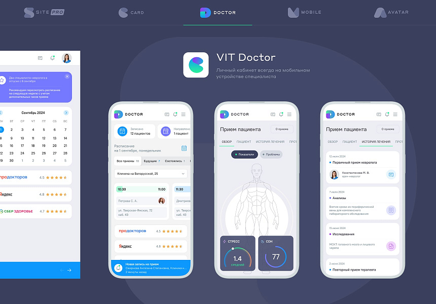 VIT Site PRO — cайт цифровой клиники50+ внедрений — мы знаем, что действительно важно для клиники, и собрали это в одном решении: