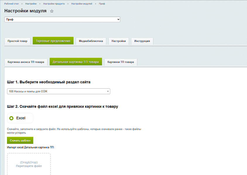 3. Скачиваем файл excel (выгружаются все товары или торговые предложения в выбранном разделе (см. шаг 2 и 3 во вкладке "Настройки")).