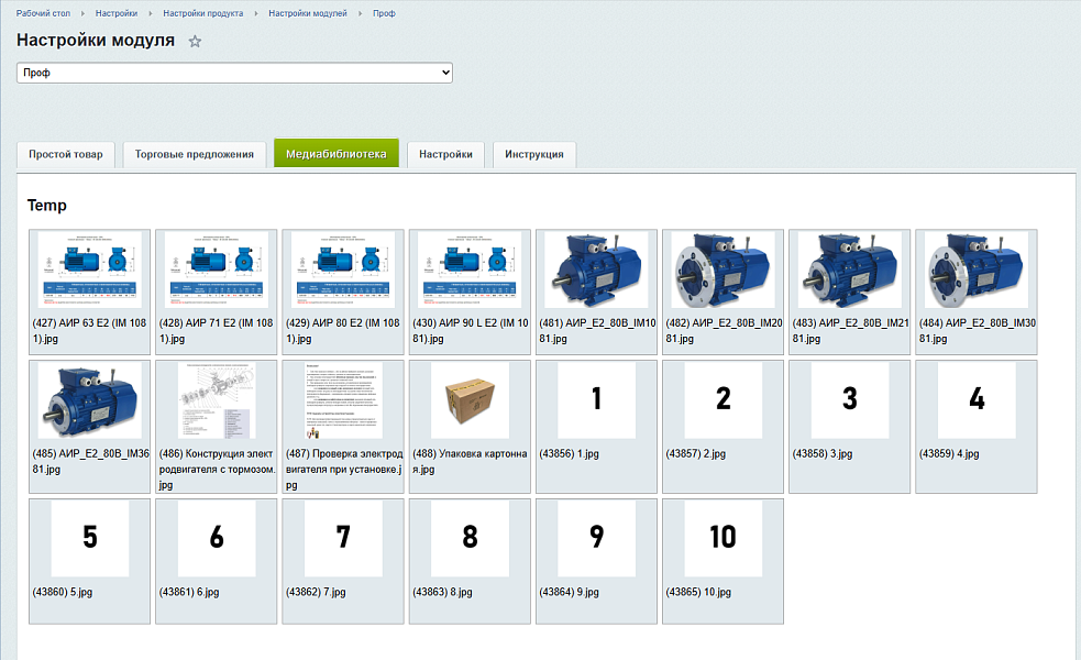 1. Добавляем в коллекцию медиабиблиотеки те картинки, которые мы хотим добавить к нашим товарам (коллекция должна быть указана в настройках модуля). Проверить добавление картинок вы можете во вкладке "Картинки" настоящего модуля, к картинкам добавятся "ID" (уникальные идентификаторы картинки).