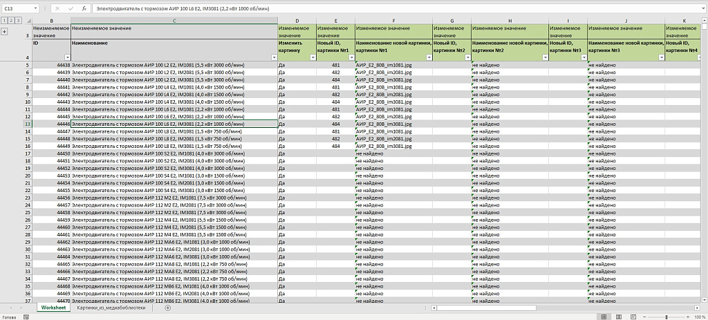 4. В Шаблоне excel на листе «Worksheet», напротив нужного нам товара, указываем ID картинки в столбце «ID новой картинки».