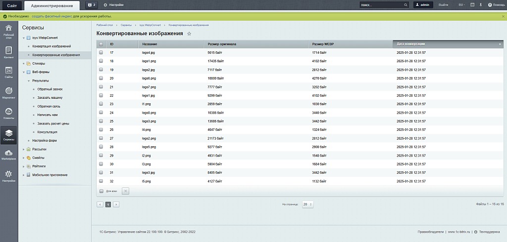 WebpConvert — это инструмент для оптимизации изображений на вашем сайте. Модуль позволяет легко конвертировать изображения в современный формат Webp, настраивать степень сжатия и управлять процессом обработки файлов. С его помощью вы сможете значительно ускорить загрузку страниц, улучшить производительность сайта.