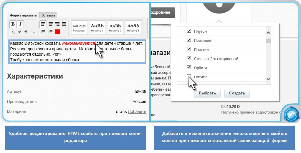 Программа-дополнение к "1С-Битрикс: Управление сайтом" предоставляет мощные средства для редактирования элементов и списков элементов инфоблоков прямо из публичной части сайта. Простой интерфейс быстро освоят даже новички.