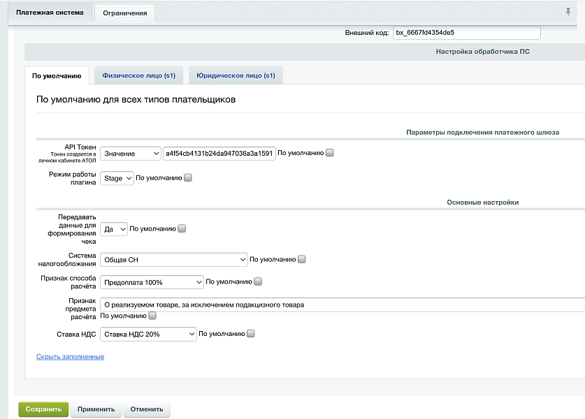 После установки модуля, в Битрикс появится новая платежная система. Ее необходимо включить и настроить.