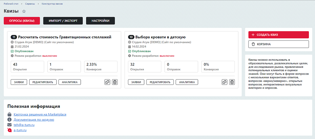 - Предоставление инструкций по установке и обновлению решений и модулей