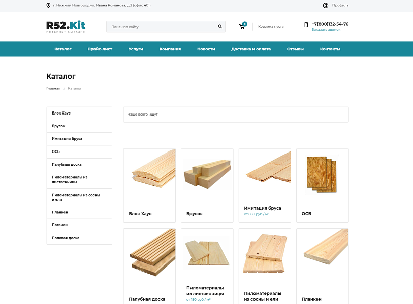 С R52.Wood позволяет создать функциональный онлайн-магазин по продаже строительных материалов.