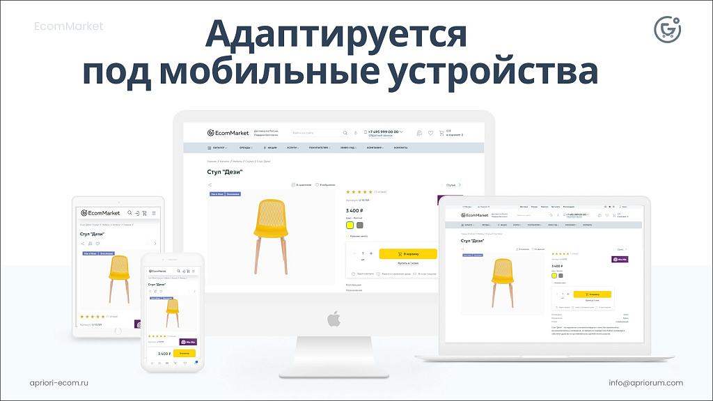 Примеры готовых дизайнов:https://alpha.apriori-ecom.ru/https://birusa.apriori-ecom.ru/https://mega.apriori-ecom.ru/https://trade.apriori-ecom.ru/https://optima.apriori-ecom.ru/https://fashion.apriori-ecom.ru/https://kinder.apriori-ecom.ru/https://compact.apriori-ecom.ru/https://fusion.apriori-ecom.ru/https://space.apriori-ecom.ru/https://default.apriori-ecom.ru/https://mega.apriori-ecom.ru/https://apriori-ecom.ru/Посмотрите демо, чтобы выбрать то, что вам нравится (варианты доступны с конфигураторе слева экрана).